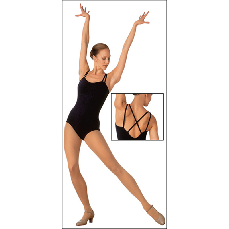 Stretch Cotton/LycraCamisole Leotard features jazz Cut Leg Line, Double Camisole Strap and Criss-Cross Back. Coolmax Built-in Bra Lining. Please allow 2-weeks shipping on this item.