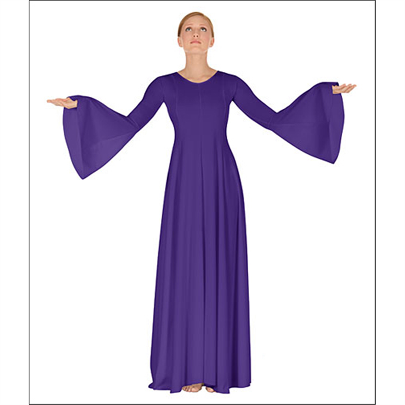 100% PolyesterPolyester Princess Seam Dress with Bell Sleeves.Glossy fabric finish. Limited stock item. Allow two weeks for shipping. If unable to wait two weeks please call to check availablity.