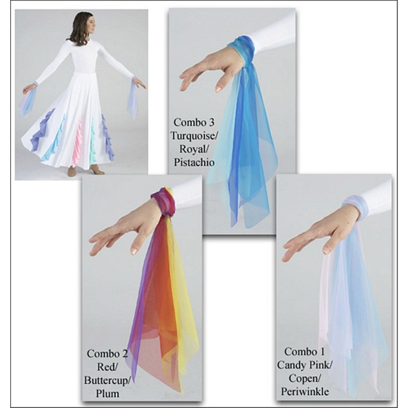 Chiffon3 pair of colors per set. (Total of 6 scarves) limited stock item. Allow two weeks for shipping. If unable to wait two weeks please call to check availablity. ***Final Sale*****