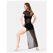 This cap sleeve tunic is made for layering! Features a dramatic hi-lo cropped fit and completely sheer fabric. Layer over a matching leotard or bra top and shorts to create a unique performance look or dance costume! Content: Powermesh