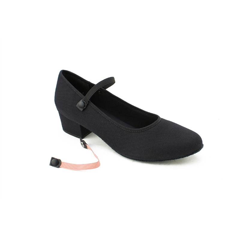 Same as Street to half size up. Canvas 1.25" Cuban heel, shoe with cushion lining. Suitable for Ballroom practice or Character dance. Black and Pink elastics included.