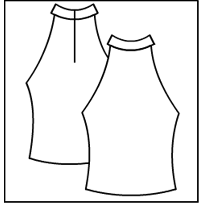 Zip-back with mock neck, waist length halter top. ***NON-STOCK ITEM: 3 PIECE MINIMUM. ALLOW 2 TO 4 WEEKS FOR SHIPPING, FINAL SALE.*** (If placing a rush order please call for availability)